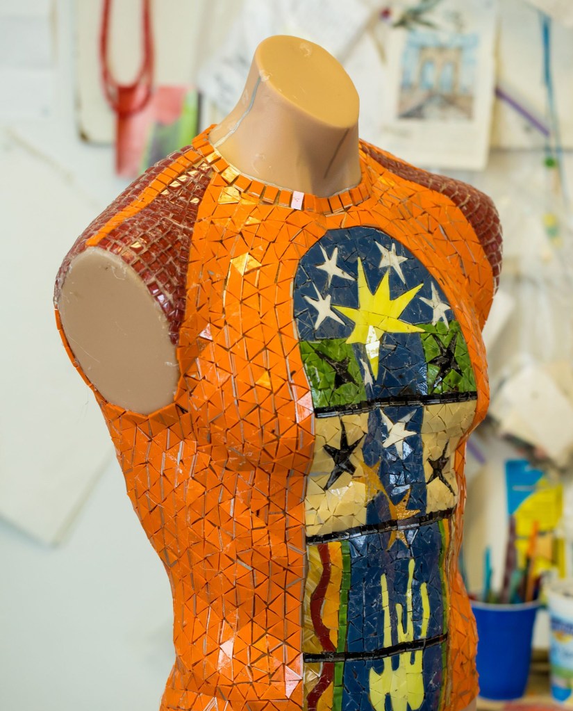 Many of my mosaic works of art are commissioned pieces. I work with the buyer to make sure they get exactly what they want. I have created sculptures for the home, a table made perfect for a room and a mosaic mannequin incorporating treasured pieces of jewelry.